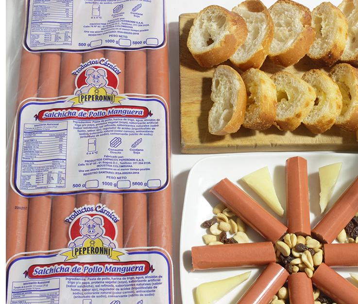 Acompaña tus mejores recetas y preparaciones con nuestra deliciosa salchicha, ideal para disfrutar en cualquier momento. Presentación de 1.000g y 5.000g.